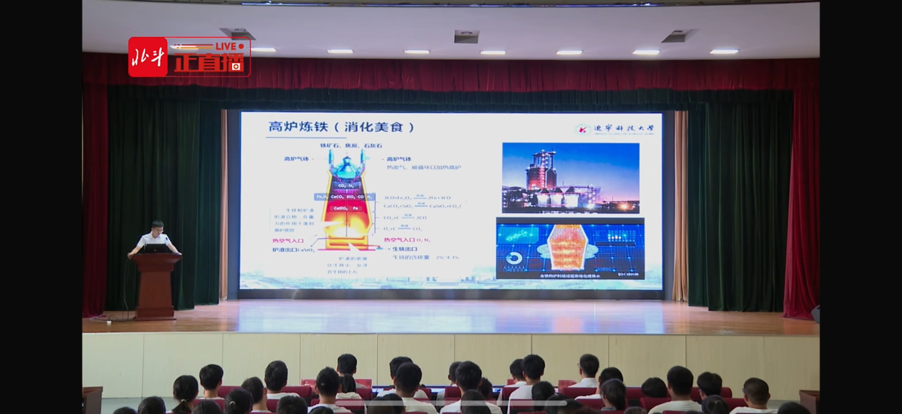 活动采用“线上+线下”结合的形式,覆盖鞍山全市31万大中小学生。学院精心选派李维娟、湛文龙、贾学龙、关锐、戚桓等优秀教师组成授课团队,以“组合授课”模式,围绕“钢铁与生活”“铁矿石从何而来”“炼铁和炼钢”“钢的成形及应用”四大板块展开讲解。1个小时的课程中,老师们生动呈现了铁矿石勘探、测绘、采矿、选矿,到烧结、冶炼、炼钢、精炼,再到连铸、轧钢的钢铁冶炼全流程,让学子们在知识探索中厚植对“钢城”鞍山的城市情怀。