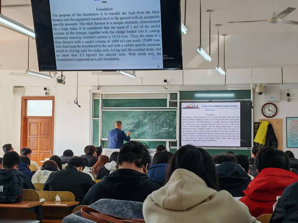 为进一步贯彻《买球赛的网站教风学风建设专项行动方案》部署要求,深入了解一线课堂教学实况,10月21日,学院领导班子成员走进Sergei Belskii教授为联冶金2023级1、2、3班讲授的《Fundamentals of Metallurgical Plants Design》课堂,开展专项听课活动。
