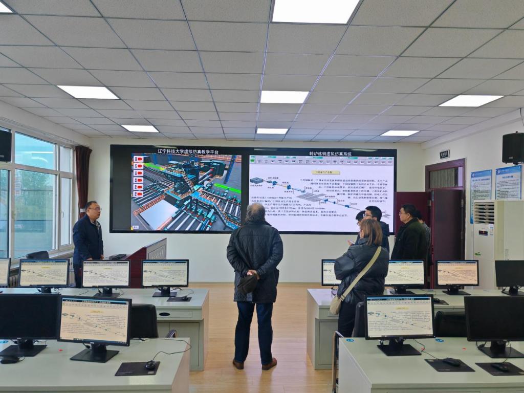 会谈结束后,代表团一行在学院领导的陪同下,参观了虚拟仿真实验室。实验室拥有高炉炼铁、转炉炼钢、连续铸钢三个最关键工艺的模型,以及VR教学设备和钢铁生产全流程虚拟仿真教学平台等。实验室逼真的模拟环境及其在教学科研中取得的创新成果给代表团留下了深刻印象。