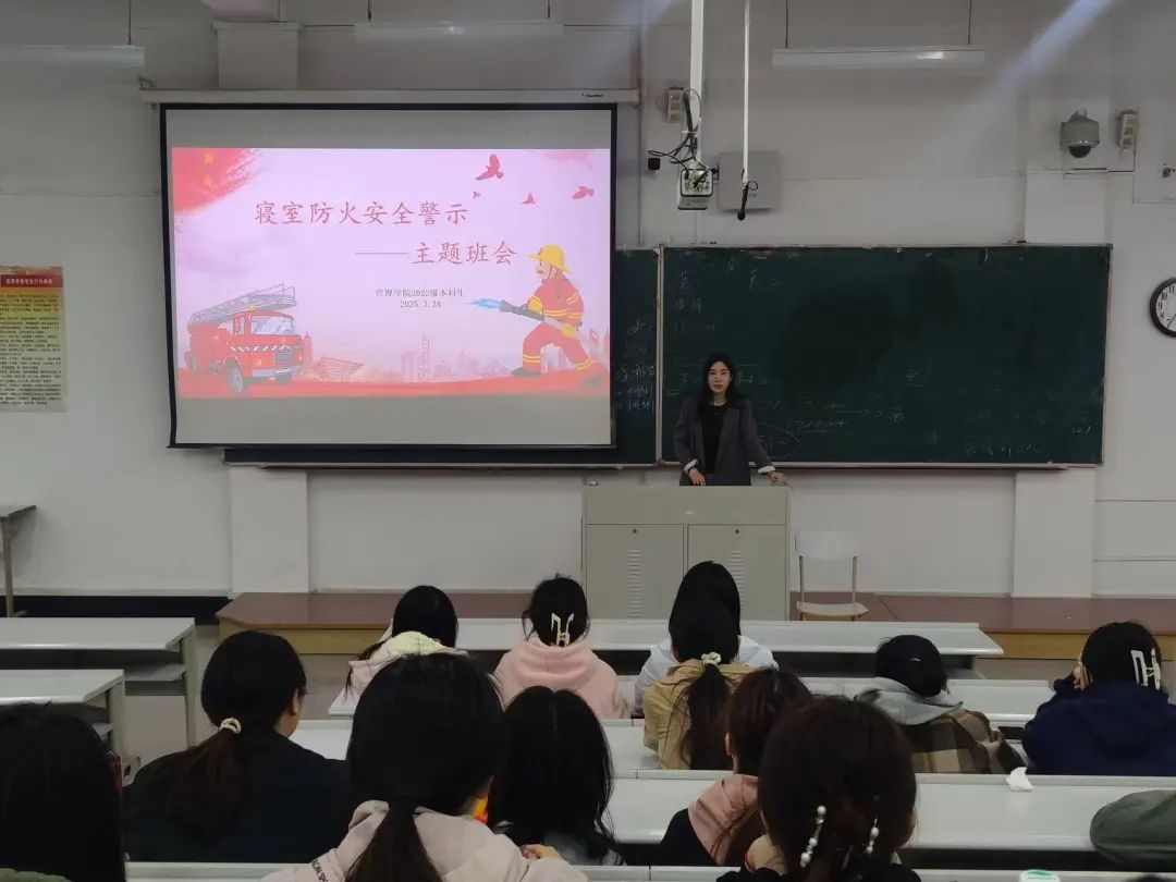 在“寝室防火安全警示” 班会上辅导员们向同学们详细讲解了寝室防火安全的注意事项,强调了违反消防安全管理规定可能引发的严重后果,并普及了相关法律法规和校纪校规。通过班会,同学们的安全意识和纪律意识显著增强,大家深刻认识到寝室防火安全的重要性,坚决杜绝违反防火安全管理规定的行为。