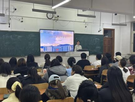 付冰辰围绕“学赛互促”理念进行分享,引导新生实现专业学习与竞赛能力的双向提升。她指出,在专业学习中应严格要求自己,课堂上全神贯注,课后及时梳理知识,遇到难点主动请教,扎实掌握高等数学、大学英语等基础课程以及岗位业务相关技能;在竞赛方面,要主动收集信息,向有经验的学长学姐请教,组队时遵循“优势互补”原则,备赛阶段做好规划,赛后及时复盘总结;此外,还可积极参与国际访学、志愿服务、社会实践等活动,在多元经历中突破舒适区,实现全面成长。