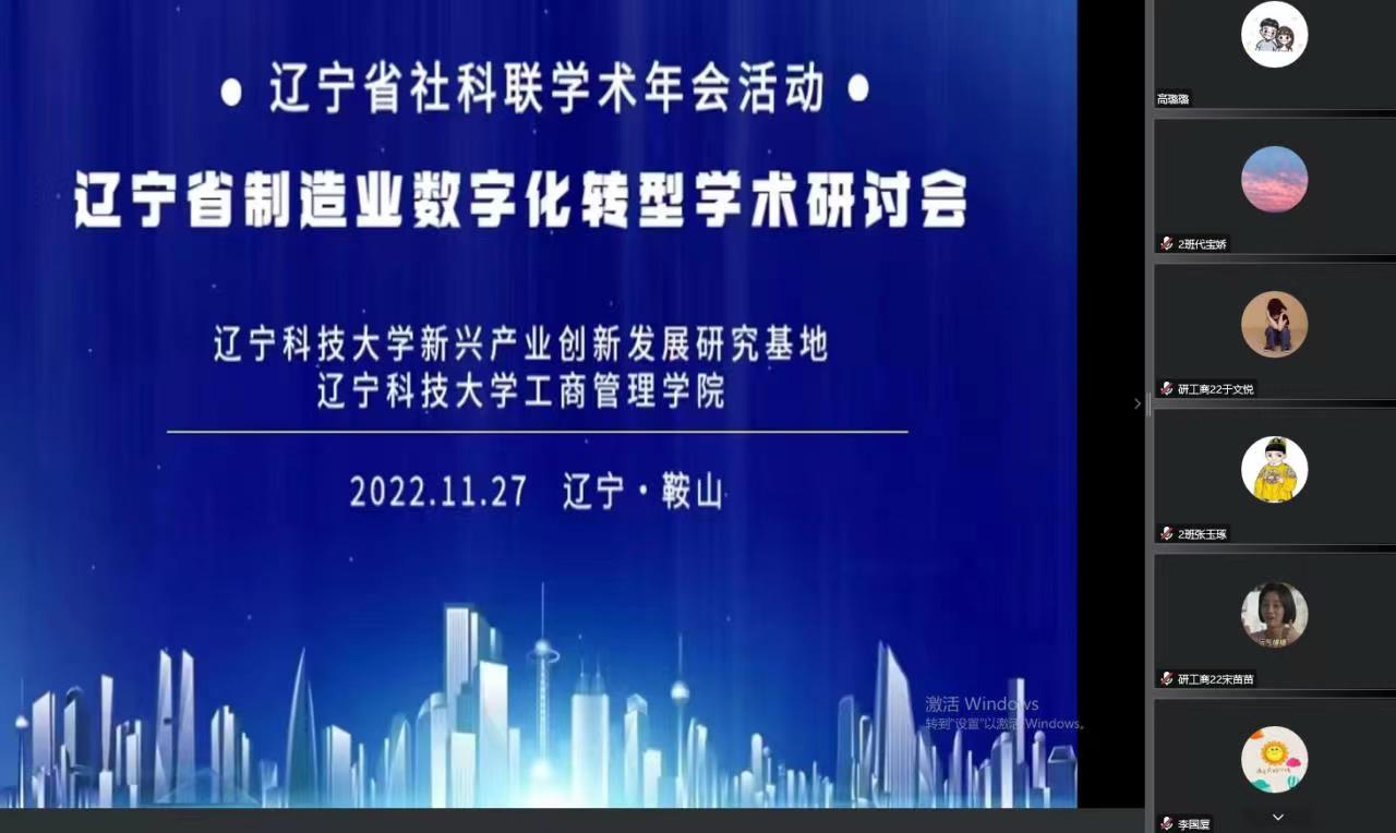 11月27日,工商管理学院通过腾讯会议举办“辽宁省制造业数字化转型”学术研讨会。此次研讨会依托买球赛的网站新兴产业创新发展研究基地,聚焦数字化转型,深入探讨我省制造业转型发展的新机遇和新路径。哈尔滨工程大学郭韬教授、沈阳工业大学王海军教授以及买球赛的网站李天柱教授进行了学术报告。沈阳工业大学、辽宁工业大学以及我校的相关老师、研究生参加了此次研讨会。