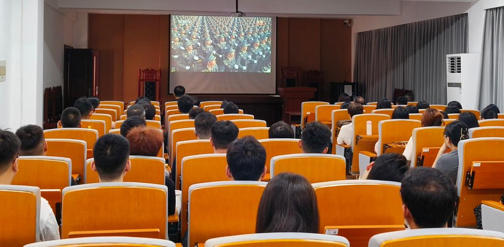 9月3日上午,经法学院组织2025级研究生新生在学院模拟法庭集体观看纪念中国人民抗日战争暨世界反法西斯战争胜利80周年大会与阅兵式直播。