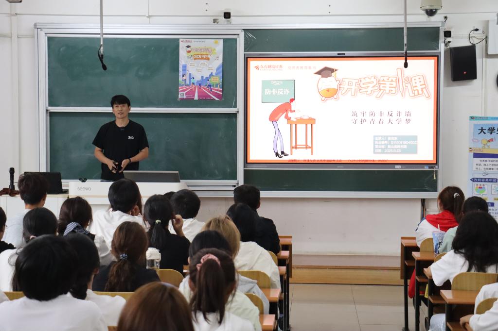 为进一步增强大学生识别诈骗手段的能力,最大限度减少财产损失,9月23日,经法学院联合东方财富证券鞍山营业部在博学楼C504,面向大一新生举办了“筑牢防非反诈墙,守护青春大学梦”主题讲座。