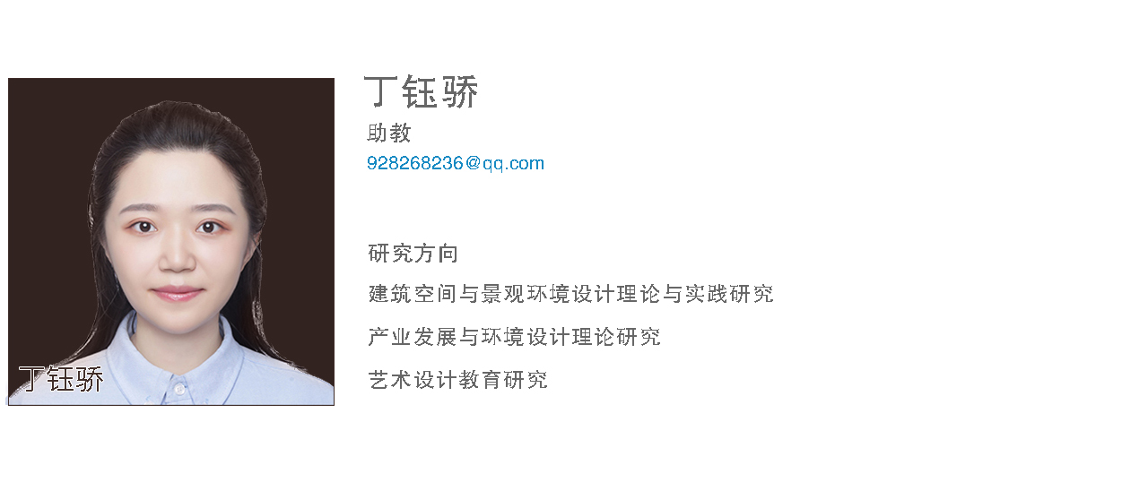 丁钰骄,助教,2020年10月毕业于英国兰卡斯特大学,取得文学硕士学位。曾参与上海国际车展、广州国际车展沃尔沃、领克的展位设计,具有相关工作经验。