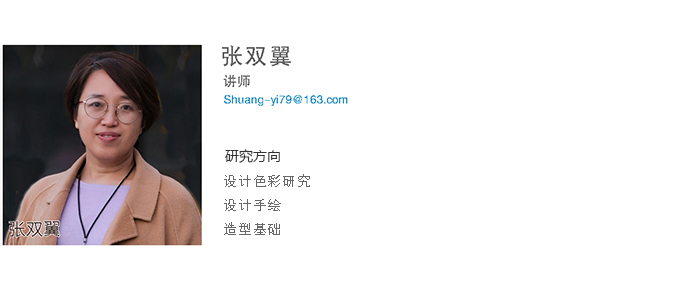 张双翼, 讲师,2003年吉林大学艺术学院艺术设计专业,文学学士;2011年吉林大学设计艺术学,硕士;现任工业设计专业专任教师,主讲《二维形态》、《手绘表现》、《产品数字化展示》等;在教学中主要研究形态构成在设计中的应用并出版专著《二维形态构成》;主持和参与多项科研项目,其中2012年获得买球赛的网站教学成果二等奖;指导学生参与设计大赛,多次获得省级一二三等奖;2019年参加中国花鸟画研修院研修,2020年参加仁美大学堂中国花鸟画研修,其中绘画作品《秋韵》在书画大赛中获一等奖,并致力于将传统文化元素融入产品设计创新之中,强化产品设计的内涵,弘扬民族文化,增强文化自信。
