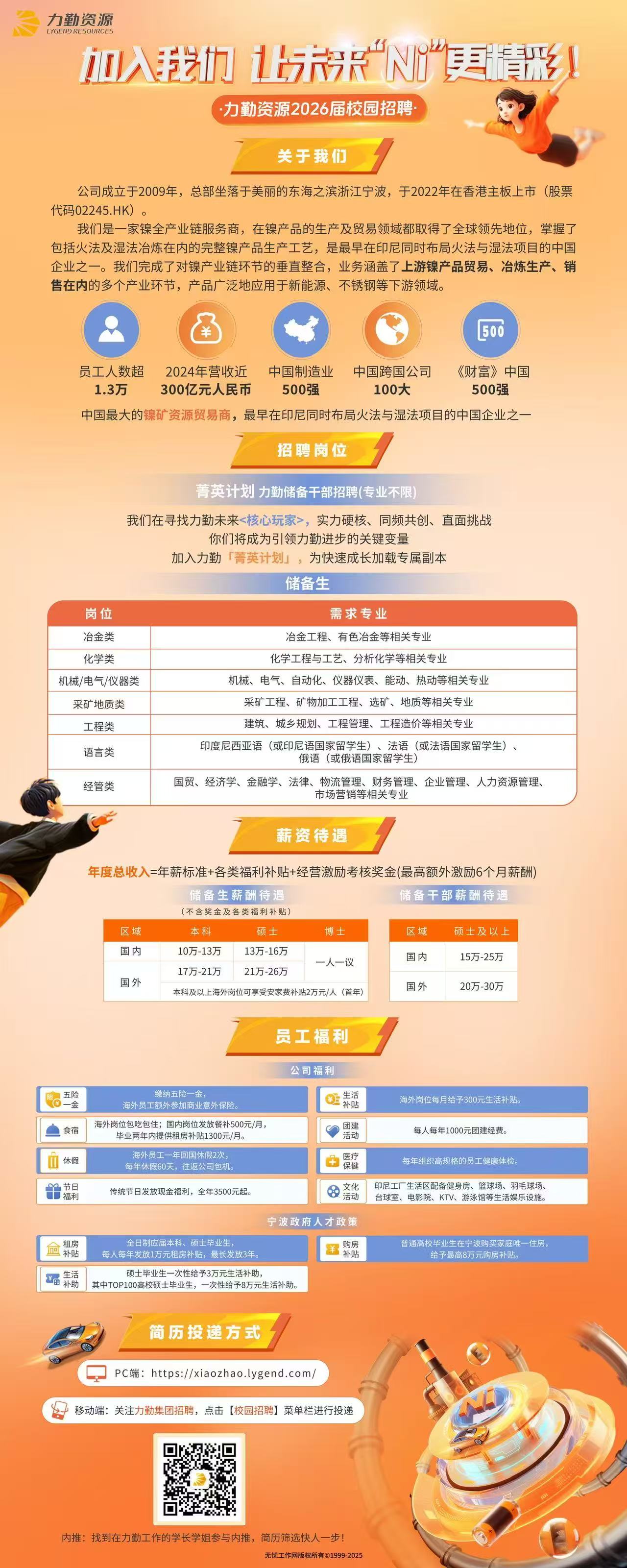 该公司为全球领先的镍资源供应商,平台广阔,发展前景良好,并为员工提供极具竞争力的薪酬和完善的福利保障。